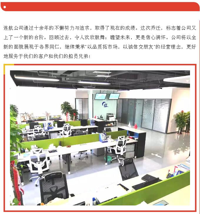 “新起點、新征程”-恭賀青島連航船舶管理服務有限公司喬遷之喜