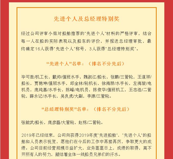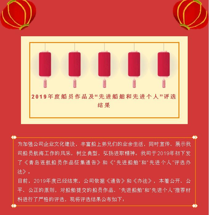 2019年度船員作品及“先進船舶和先進個人”評選結果
